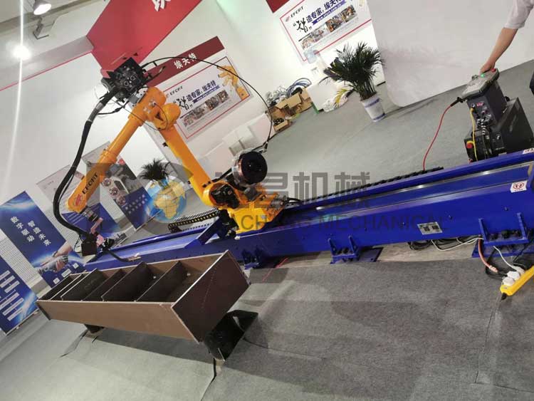 機器人行走軌道采用機器人外部軸控制,可以和機器人聯(lián)動動作,可以在任意位置停留機器人行走軌道,可以增加機器人的工作范圍,提高機械手的焊接行程。