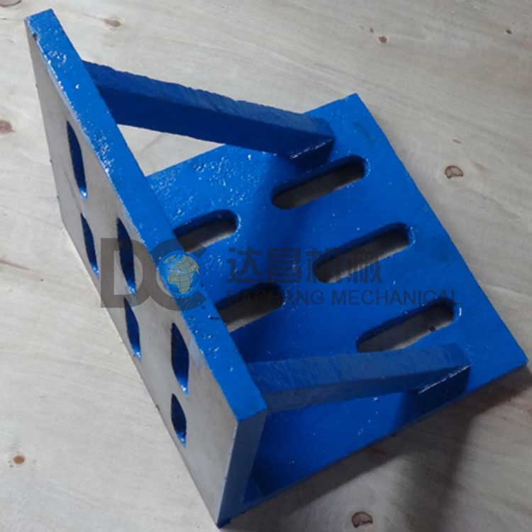 鑄鐵彎板按GB6092 - 85標準制造,材料為HT200-HT300,鑄鐵彎板的工作面采用刮研工藝,用于檢驗工件的90°角,維修設備時檢驗零部件相關表面的相互垂直度,還常用于鉗工劃線及零部件的檢測和機械加工中的裝夾。鑄鐵彎板能在平板上檢查工件的垂直度,適用于高精度機械和儀器檢驗和機床之間不垂直度的檢查,廣泛使用在工業測量中。